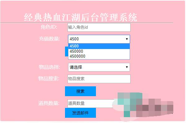 - 热血江湖8简易充值+物品后台,支持45W/450W充值